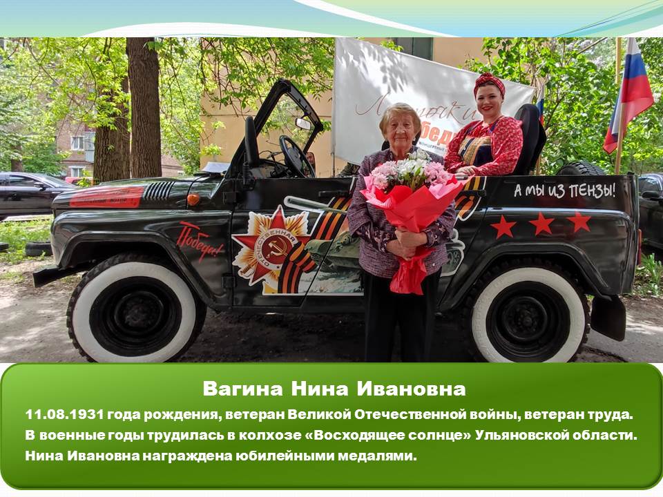 Вагина Нина Ивановна,11.08.1931 года рождения, ветеран Великой Отечественной войны, ветеран труда.