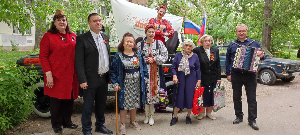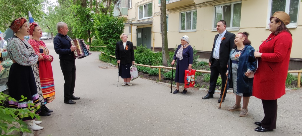 Артисты концертной бригады «Ласточки Победы» МБУ «ЦКиД» г. Пензы (директор - Шилов Евгений Андреевич) прямо во дворе домов развернули концертные площадки и исполнили для ветеранов известные песни военных лет.