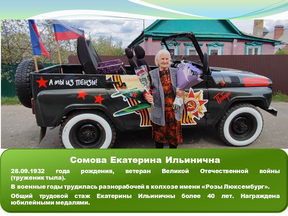 Сомова Екатерина Ильинична, 28.09.1932 года рождения, ветеран Великой Отечественной войны (труженик тыла).