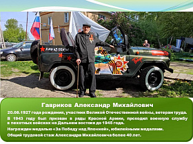 Гавриков Александр Михайлович, 20.08.1927 года рождения, участник Великой Отечественной войны, ветеран труда.