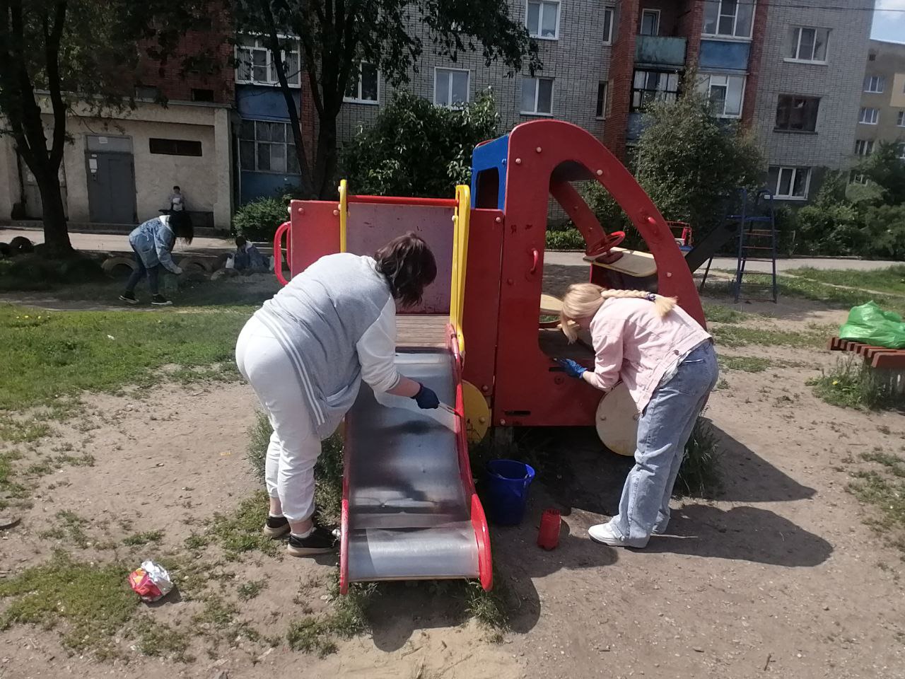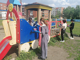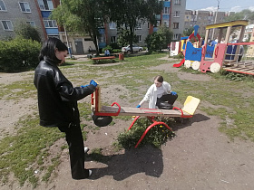 Сотрудники молодежного центра, вооружившись хорошим настроением, кисточками и краской, обновили внешний вид данной площадки. Выполнена покраска игровых элементов, осуществлена санитарная очистка муниципальной территории.