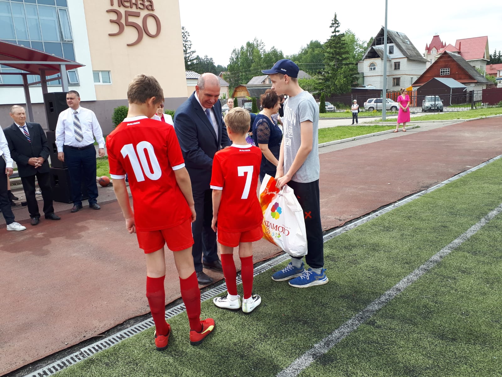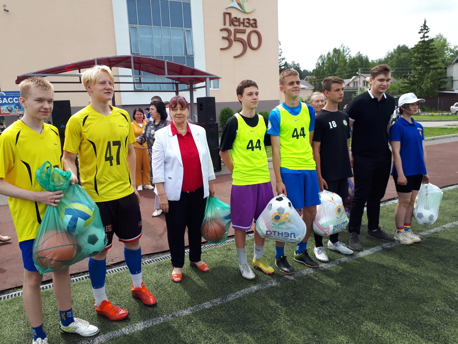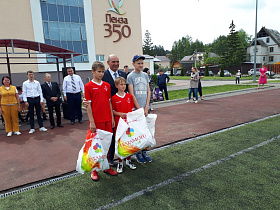 По доброй традиции спортивные команды общеобразовательных учреждений получили спортивный инвентарь – мячи.