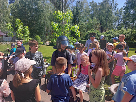 Сотрудники полиции продемонстрировали детям специальные средства, используемые сотрудниками полиции при исполнении служебных обязанностей, в том числе служебный автомобиль, оснащенный специальными сигналами.