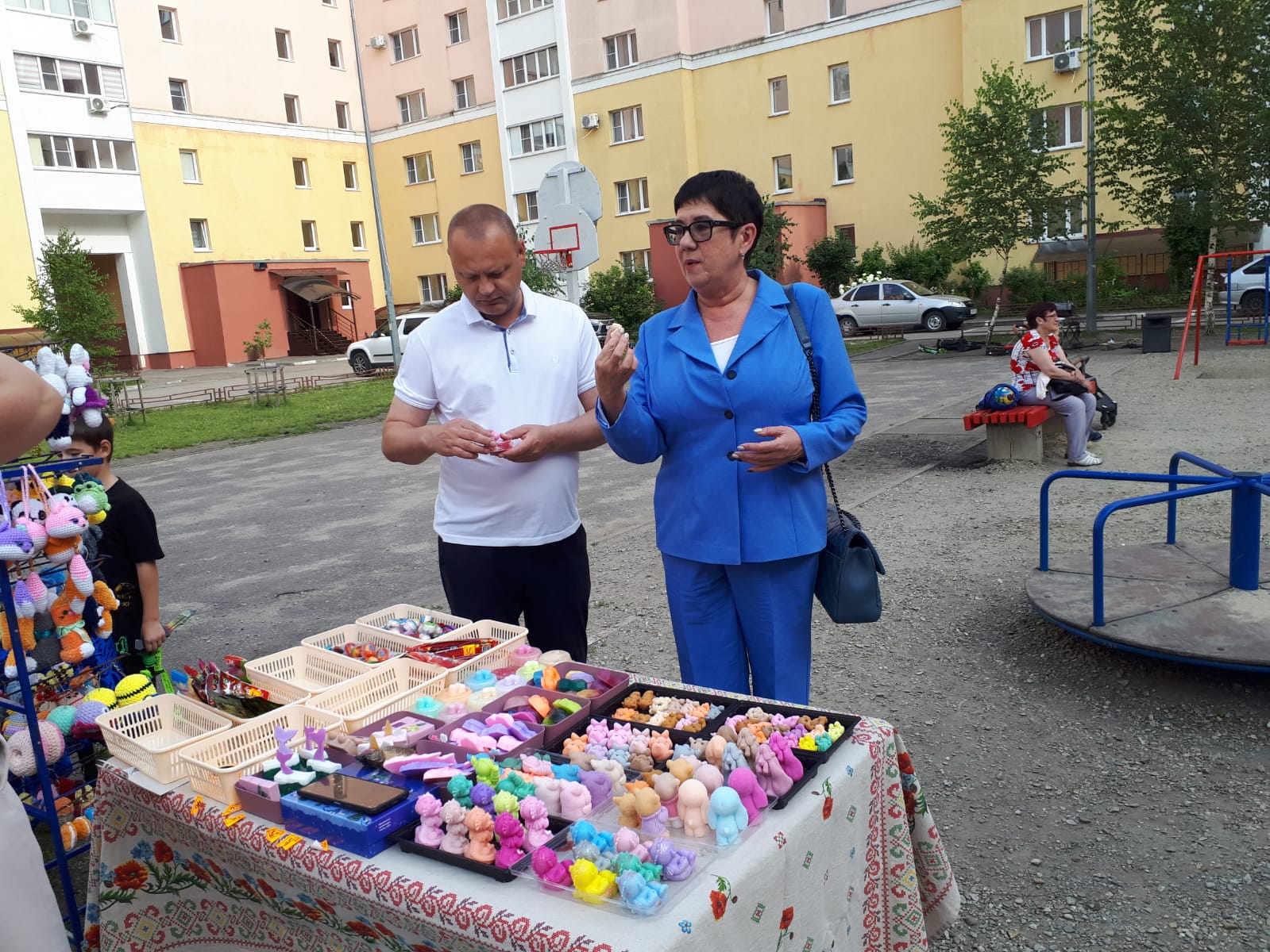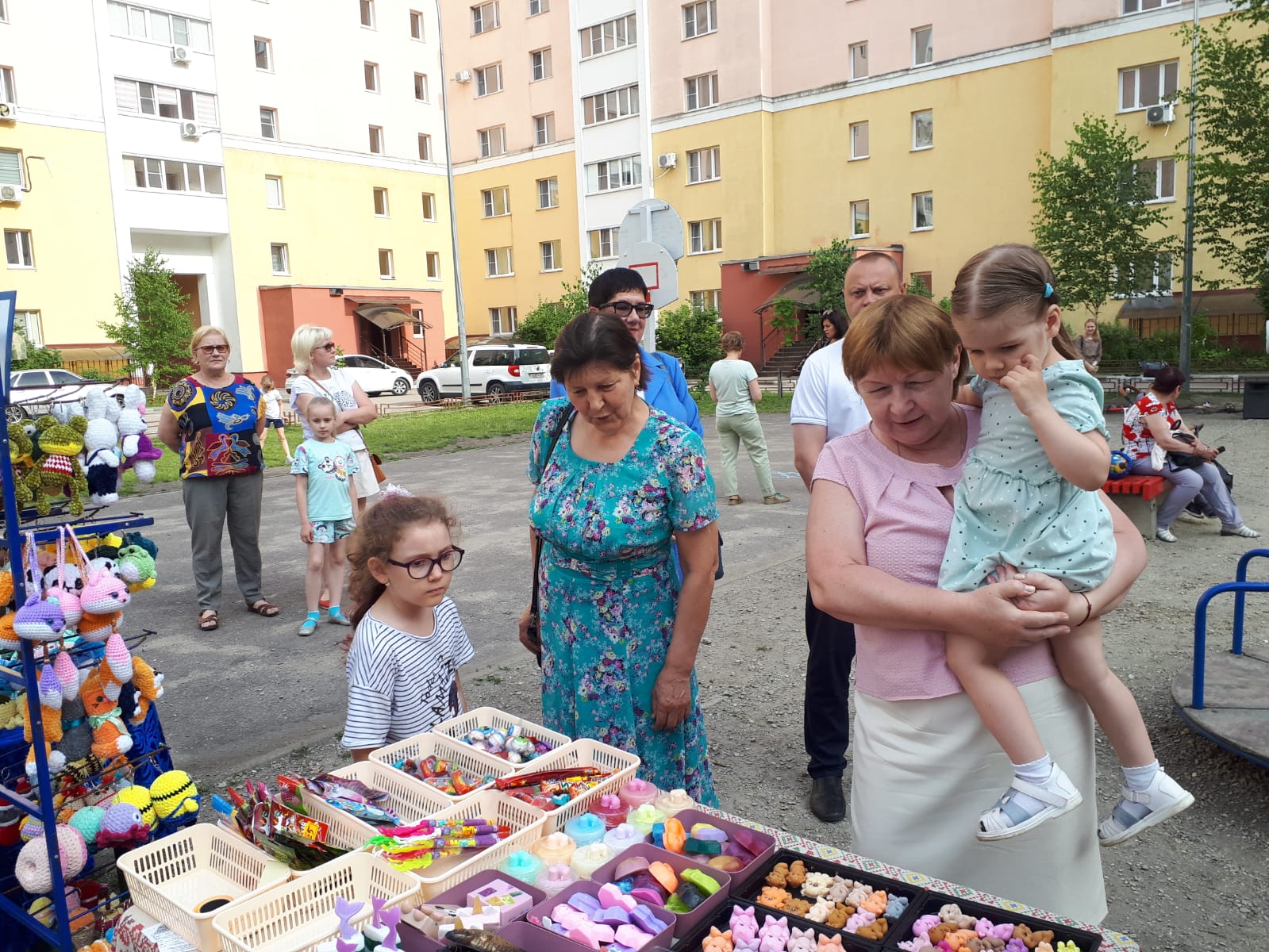 На площадке собрались и взрослые, и дети, чтобы вместе провести вечер и просто отдохнуть, послушать добрые душевные песни, поучаствовать в играх.
