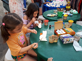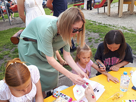 Преподаватели и учащиеся Детской школы искусств «Гармония» (директор Пелагея Александрова) подготовили программу с разнообразными вокальными номерами, конкурсами и аквагримом.