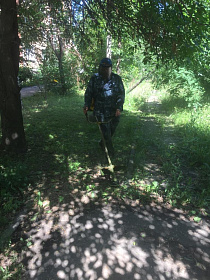 Администрацией района совместно с активистами проведены санитарная очистка, обрезка кустарников, покос травы на муниципальной территории по проезду Жемчужный, 11.