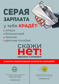 С целью привлечения внимания общественности к вопросу легализации трудовых отношений, на территории Пензенской области с 1 по 30 сентября 2023 года проводится месячник по противодействию теневой занятости населения. В этом году девиз месячника – «Скажи «НЕТ» зарплате в конверте!».