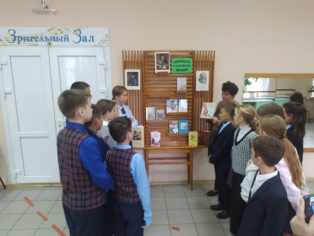 В фойе заведующий Городской библиотеки № 3 МБУ «ЦБС г.Пензы» Лидия Киреева подготовила книжную выставку произведений Льва Толстого "Зеркало русской души".