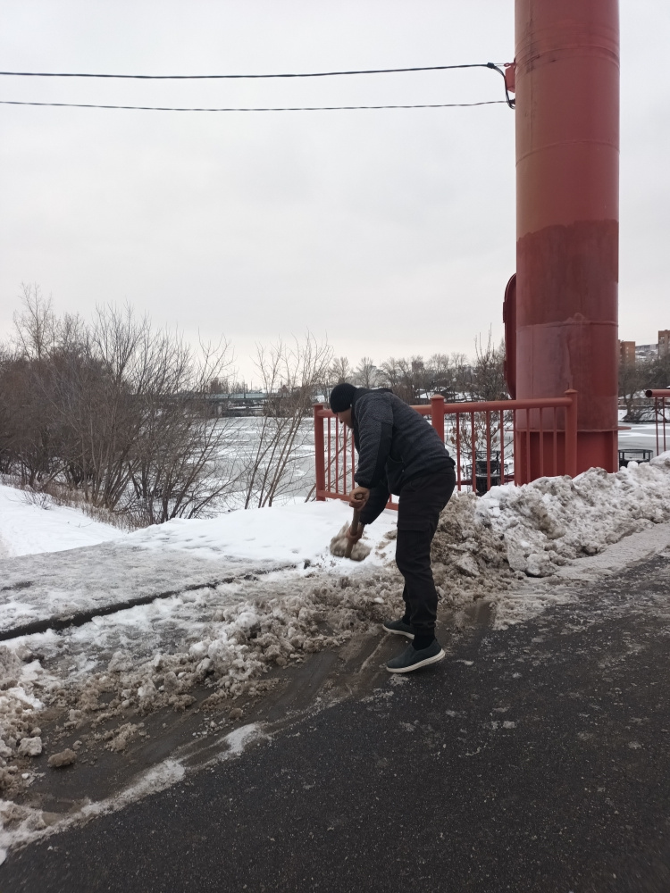 По улицам Ангарская, Антонова, Злобина, Коннозаводская, Луначарского, Фабричная выполнены работы по очистке от снега и обработке противогололедными средствами спусков, лестничных маршей.