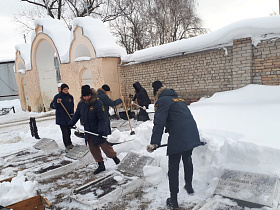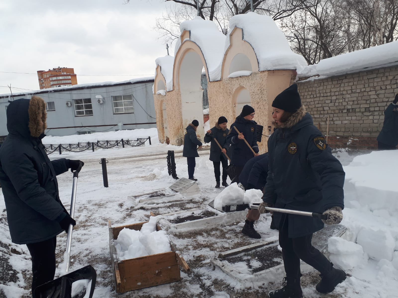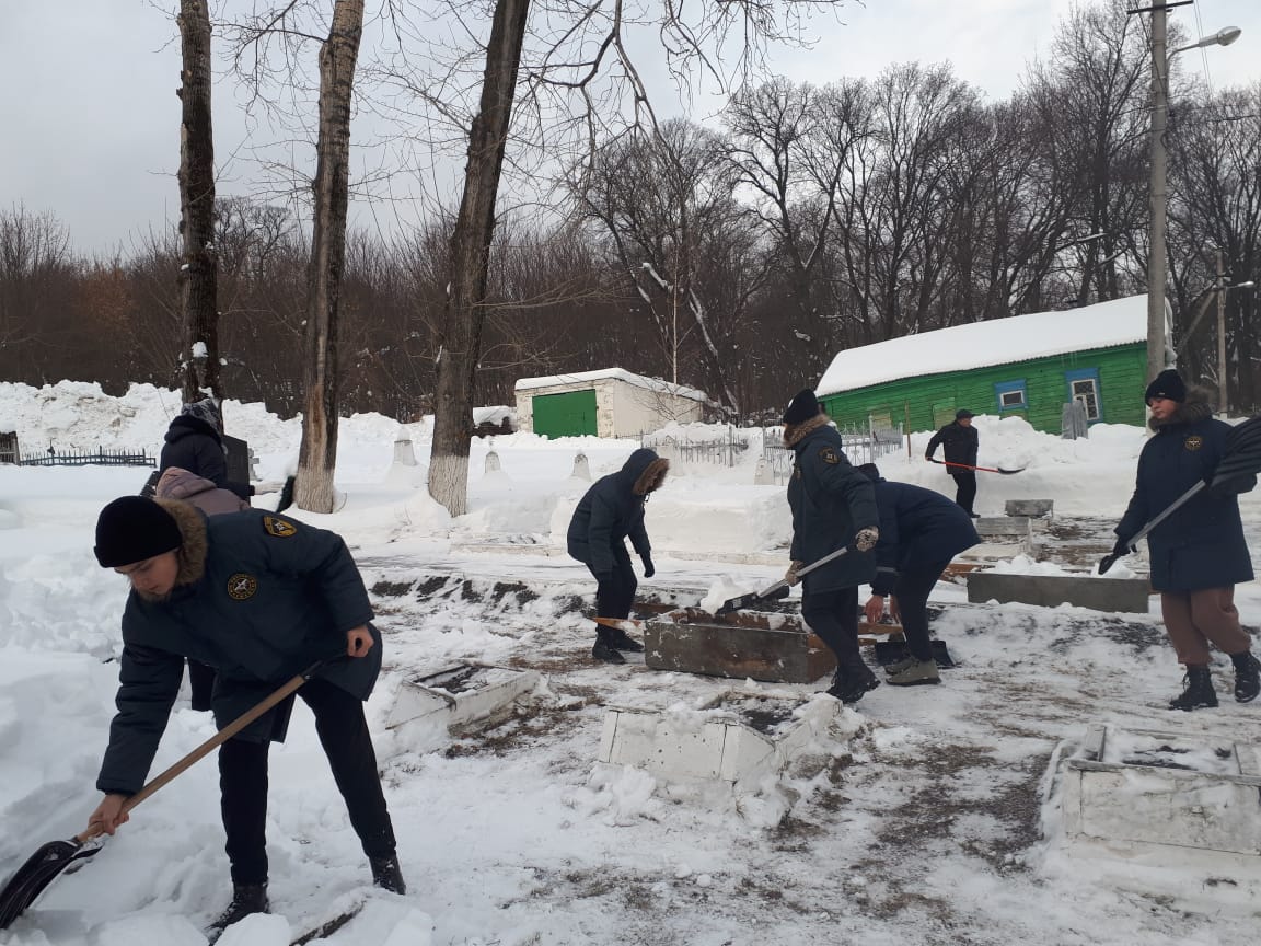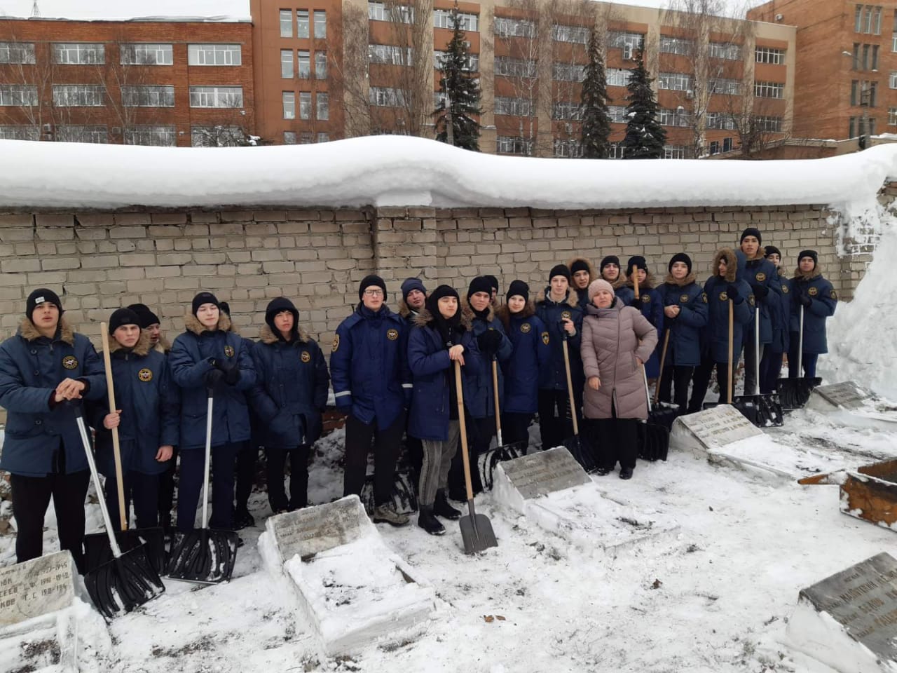 18 февраля 2022 года в преддверии Дня Защитника Отечества учащиеся МБОУ «Кадетская школа по делам ГОЧС № 70» г. Пензы имени 70-летия Победы в Великой Отечественной войне (директор Евгений Выборнов), ГАПОУ ПО «Пензенский колледж транспортных технологий» (и.о. директора Лариса Казакова) приняли участие в патриотической акции по очистке от снега братских захоронений на Мироносицком кладбище.