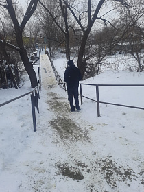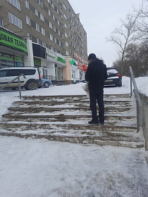 При участии активистов района по улицам Антонова, Злобина, Коннозаводская, Луначарского, Фабричная, Ангарская выполнены очередные работы по очистке от снега и обработке противогололедными средствами спусков, лестничных маршей.