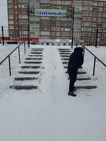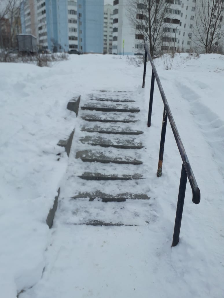 По улицам Коннозаводская, Антонова, Луначарского, Ангарская, Фабричная очищены от снега лестничные марши и спуски.