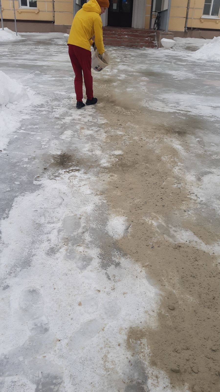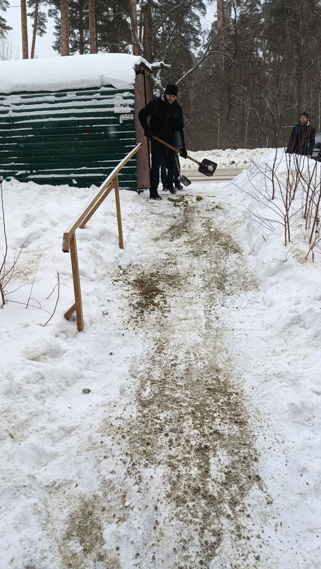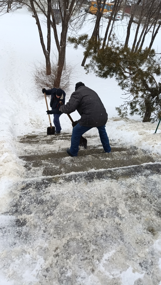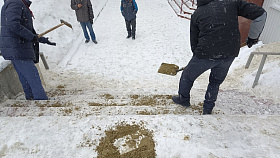 Трудовые коллективы промышленных предприятий, объектов потребительского рынка, учреждений образования, здравоохранения, культуры, спорта,приняли участие в работах по очистке от снега подходов к зданиям и прилегающих к ним территорий, опасные участки обработаны противогололедными средствами.