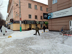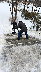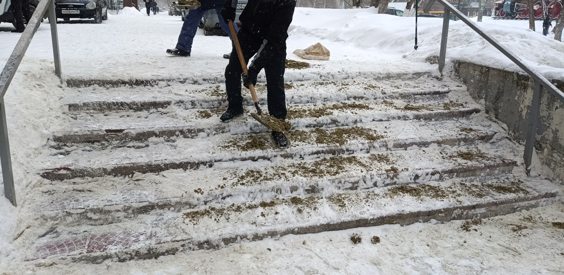 Администрацией района организована обработка реагентами, очистка от снега спусков и лестничных маршей, расположенных по улицам Луначарского, Октябрьская, Антонова, Коннозаводская, Ангарская, Фабричная, Злобина.