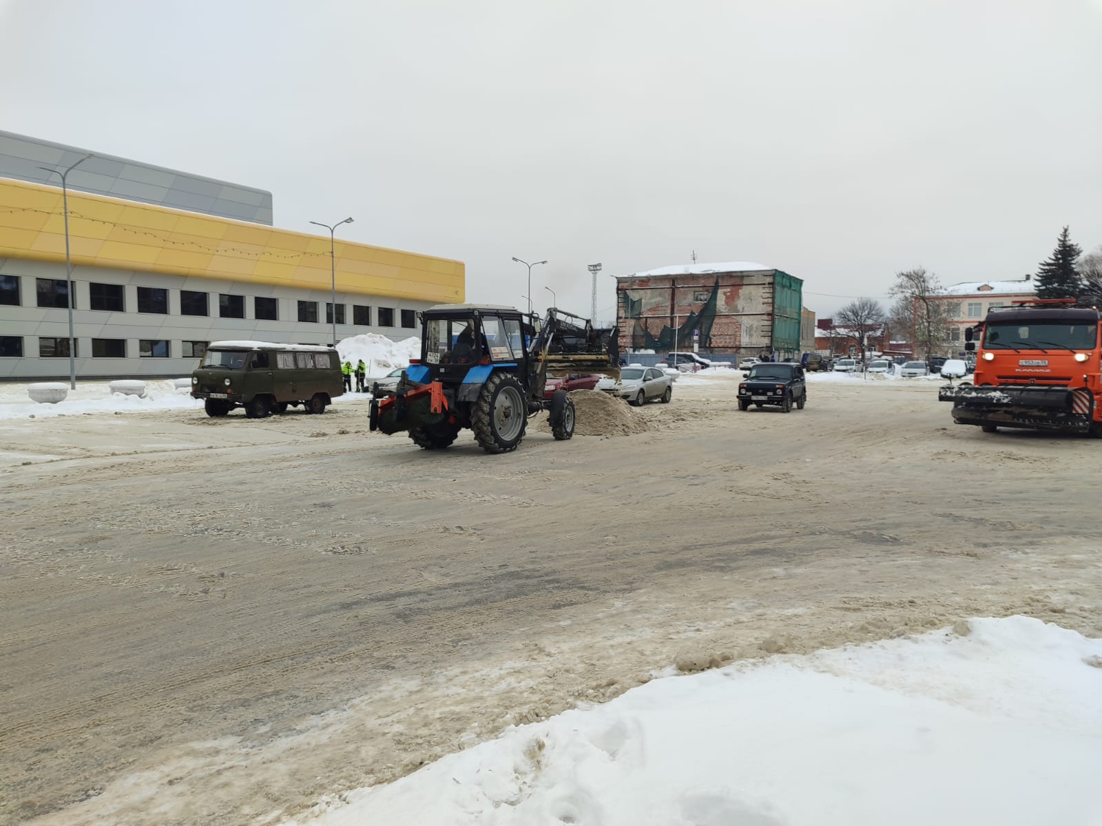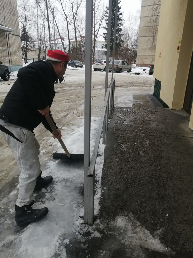 Трудовые коллективы промышленных предприятий, объектов потребительского рынка, учреждений образования, здравоохранения, культуры, спорта, приняли участие в работах по очистке от снега подходов к зданиям и прилегающих к ним территорий, опасные участки обработаны противогололедными средствами.