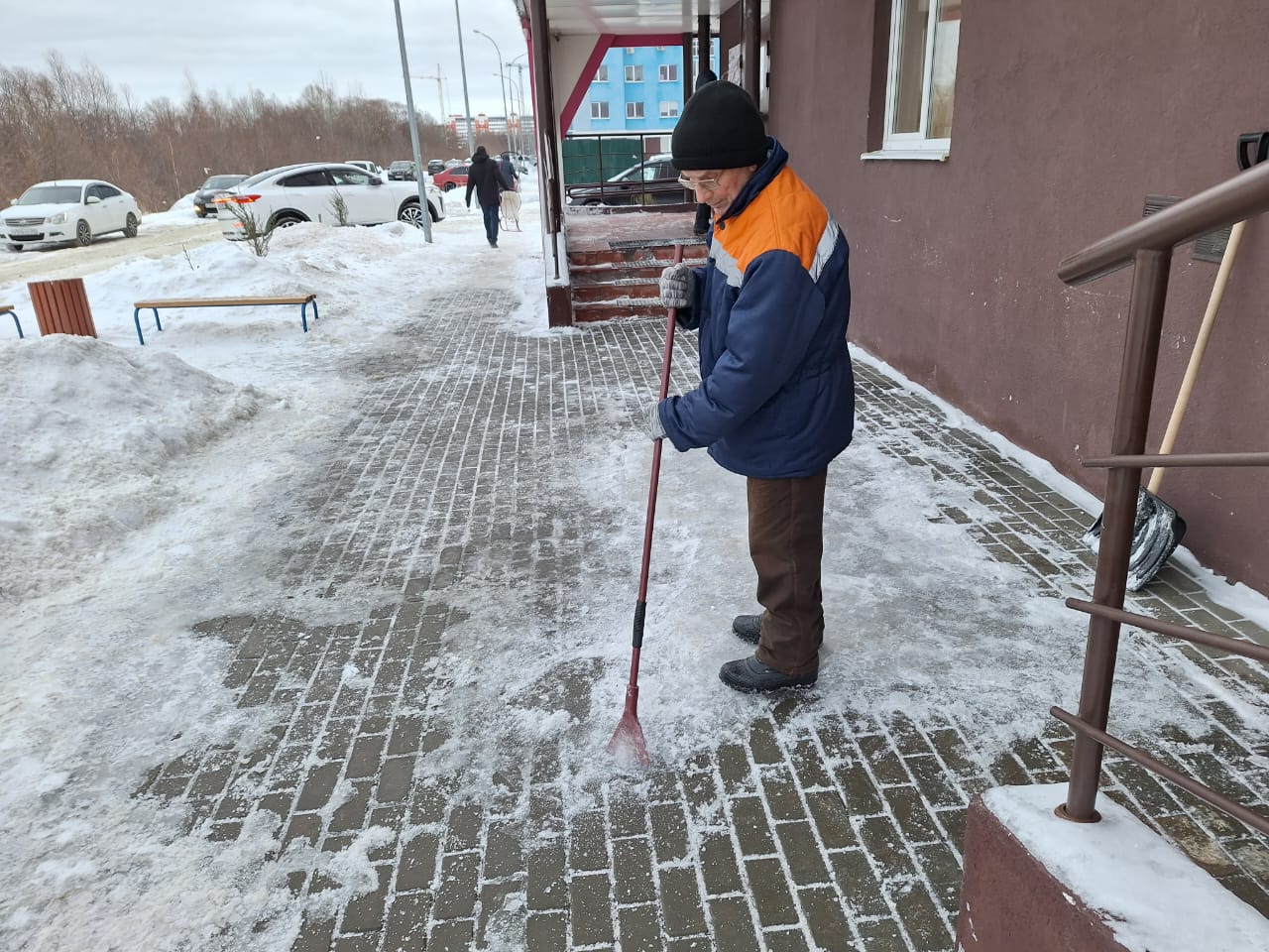 На придомовых территориях многоквартирных жилых домов работниками управляющих компаний и товариществ собственников жилья осуществлялись работы по уборке снега, вывозу мусора с контейнерных площадок, посыпке реагентами обледеневших участков.
