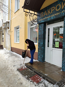 Администрацией района организована обработка реагентами, очистка от снега пешеходных дорожек по улицам Октябрьская, Луначарского, Московская. По улицам Суворова, Бакунина, Московская, Чехова очищены от незаконно размещенных объявлений опоры наружного освещения, дорожные знаки.