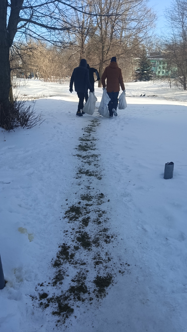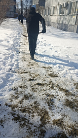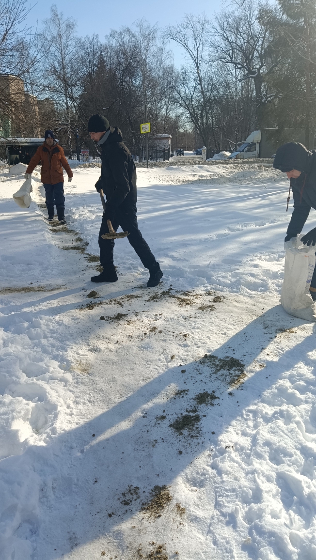 По многочисленным обращениям жителей микрорайона Маяк проведена обработка противогололедными средствами пешеходной дорожки в районе многоквартирного дома по улице Тарханова, 13.