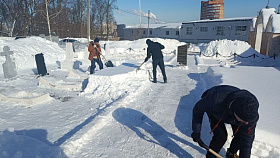 К предстоящему празднованию Дня Защитника Отечества проведена очистка от снега мест захоронения участников Великой Отечественной войны на Мироносицком кладбище.