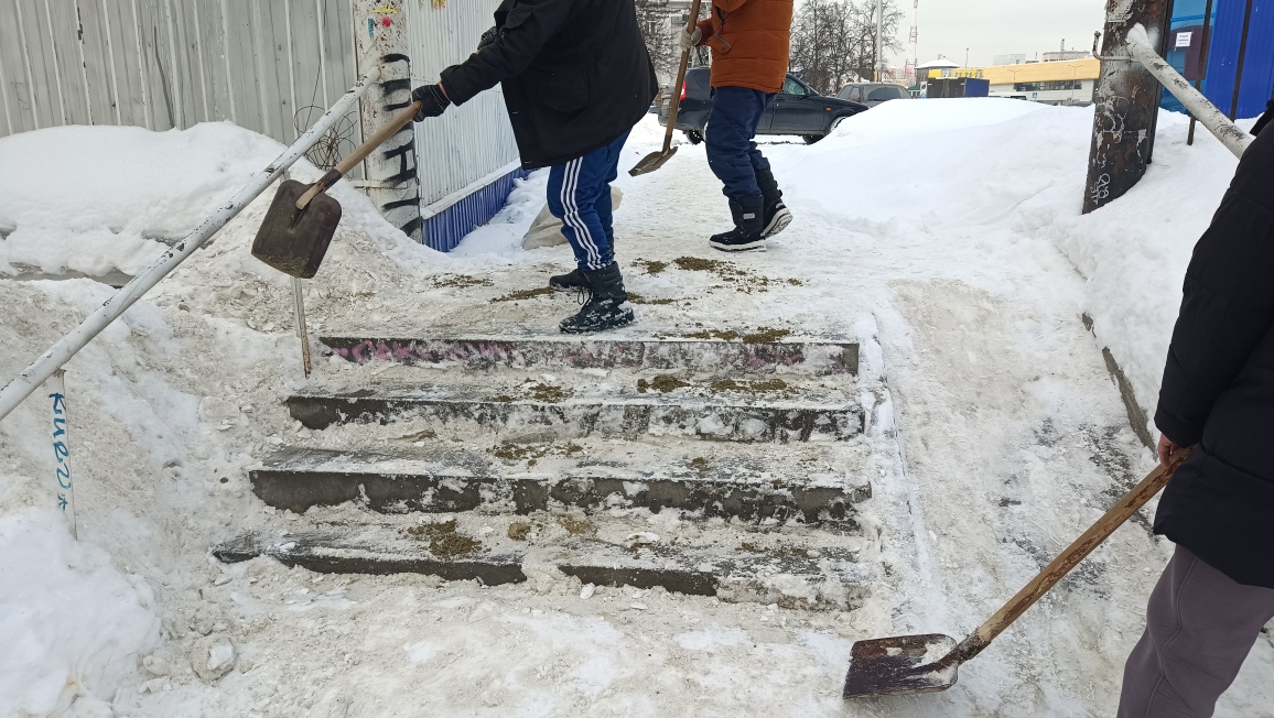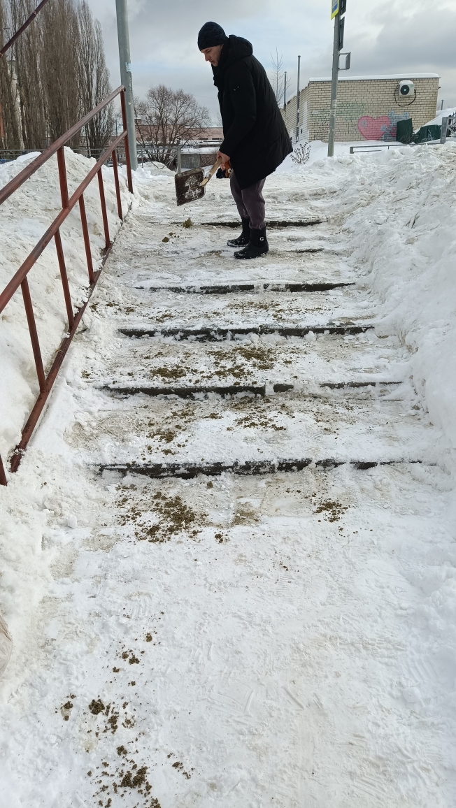 По улицам Луначарского, Октябрьская, Антонова, Коннозаводская выполнены работы по очистке от снега, обработке противогололедными средствами пешеходных спусков и лестничных маршей.