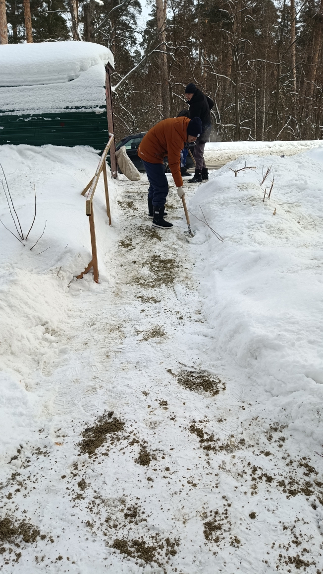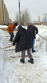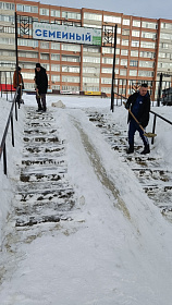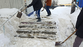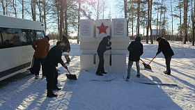 Проведена расчистка от снега подъездных путей и территории у мемориала «Селикса» в микрорайоне Монтажный.