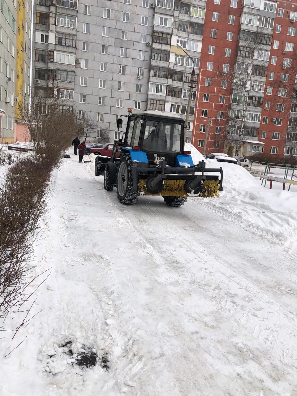 На придомовых территориях многоквартирных жилых домов работниками управляющих компаний осуществляются работы по расчистке от снега входных групп домов, пешеходных дорожек, тротуаров, опасные участки обрабатываются противогололедными средствами.