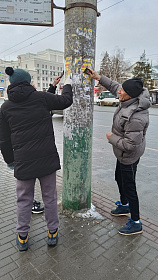 Кроме того, продолжена работа по очистке опор наружного освещения от незаконно размещенных объявлений по улицам Чехова, Урицкого, Московская, Суворова.