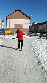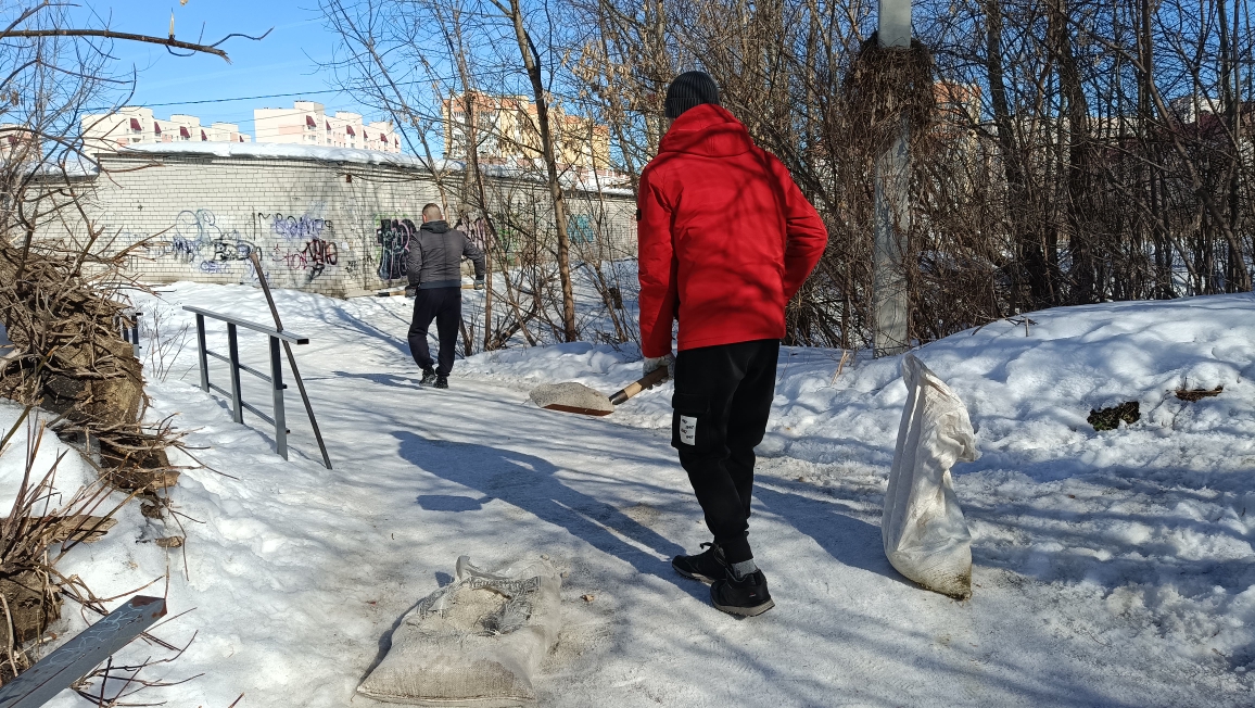 Выполнена обработка противогололедными средствами пешеходной дорожки, расположенной на участке от улицы Клары Цеткин до улицы Долгорукова.