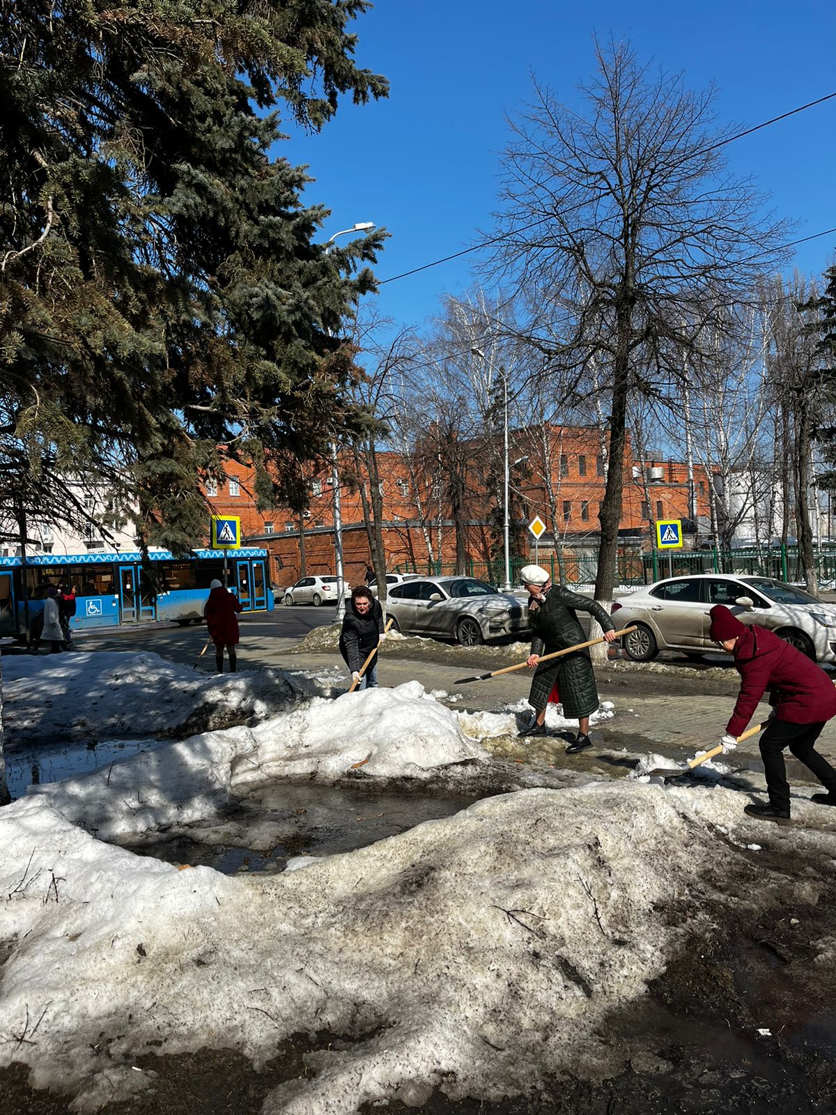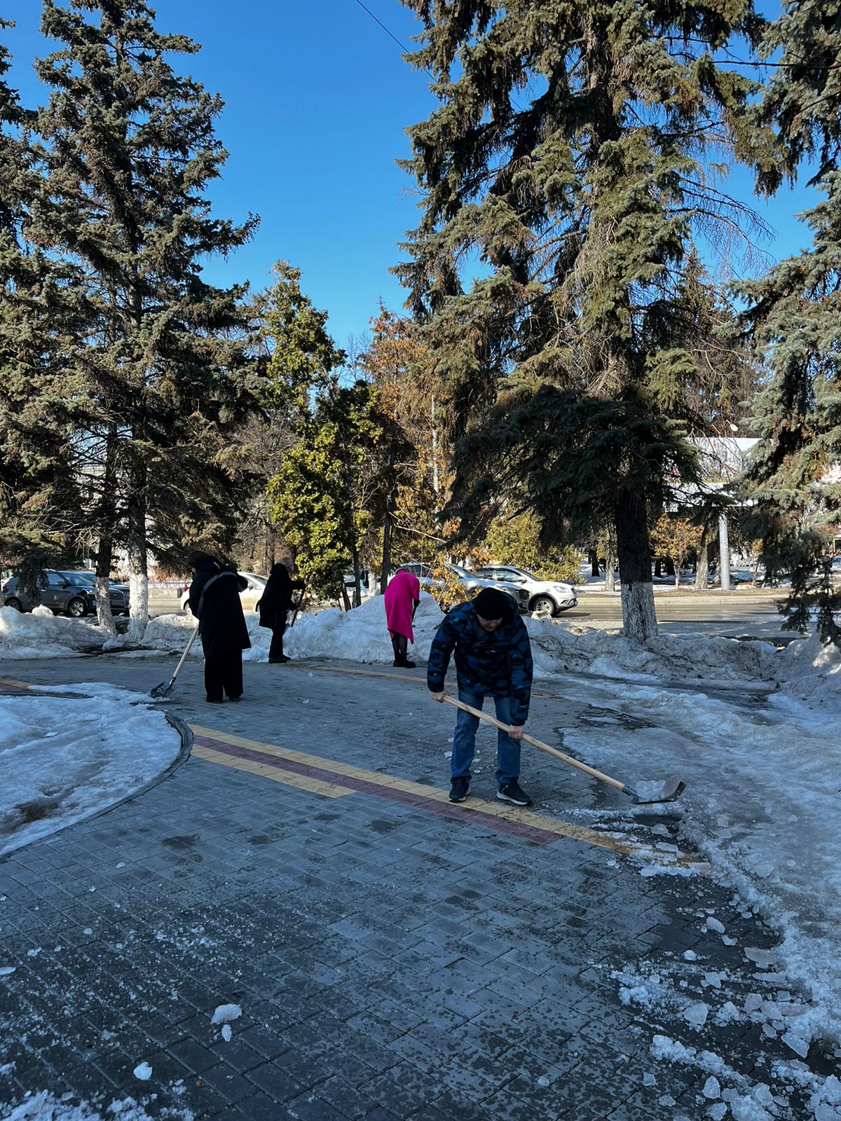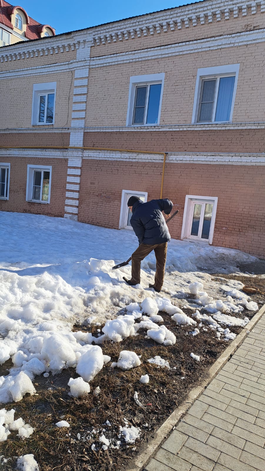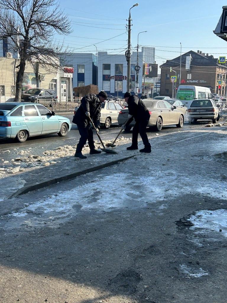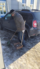 Сотрудники администрации района тоже приняли участие в санитарной пятнице, ворошили снег на улице Московская.