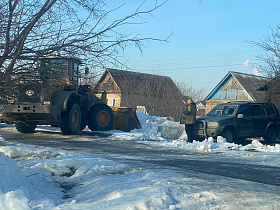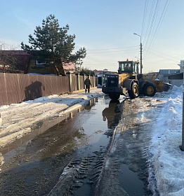 С целью недопущения подтопления территорий подрядной организацией осуществлены работы по вывозу снежных масс с улиц Ангарская, Спартаковская, Марата.