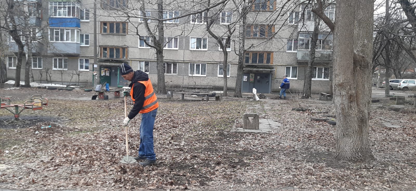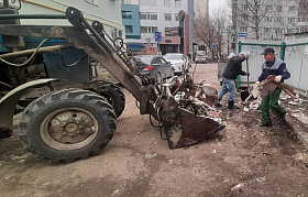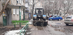 На придомовых территориях многоквартирных жилых домов продолжают трудиться работники управляющих компаний и товариществ собственников жилья.