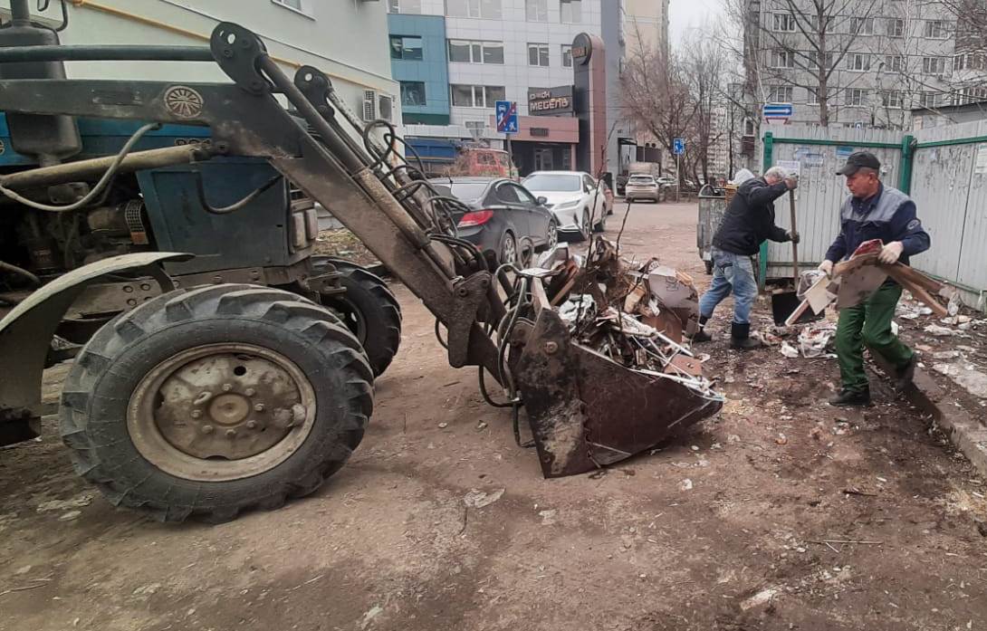 В районе улиц Клары Цеткин, 11,13, Проезжая, Антонова, 19б, осуществлен подбор бытового мусора.