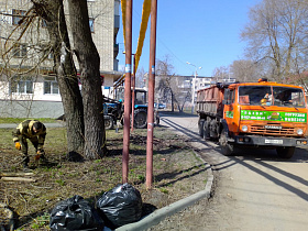 Управляющие компании, обслуживающие жилой фонд, продолжают наводить чистоту и порядок на придомовых территориях многоквартирных жилых домов.