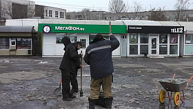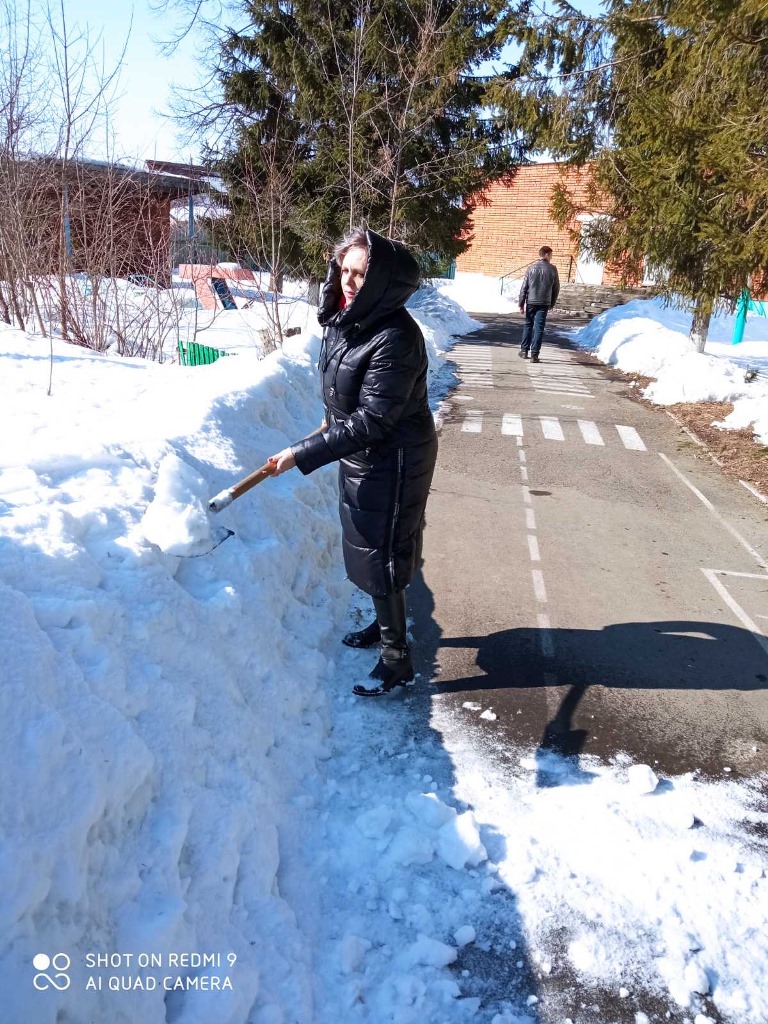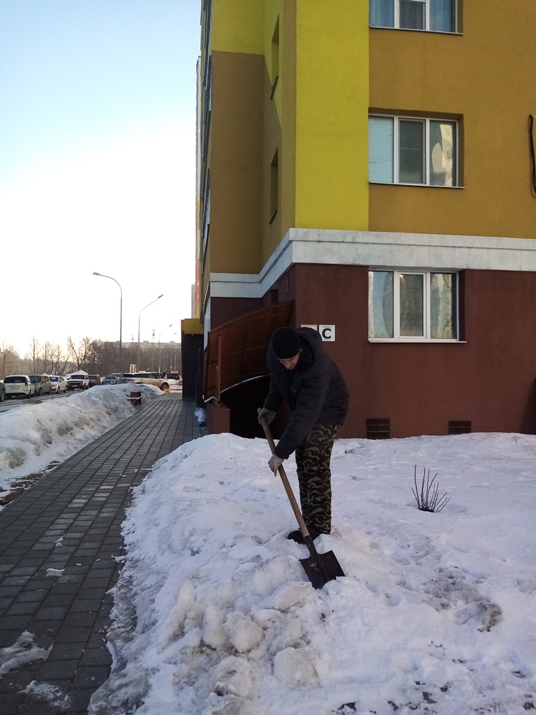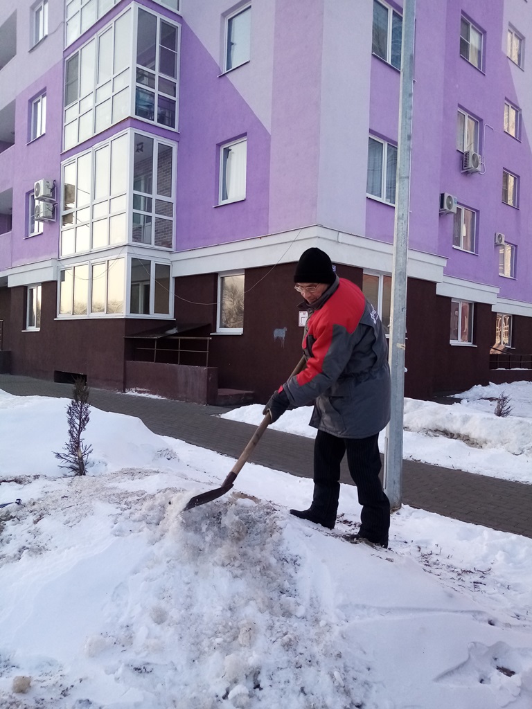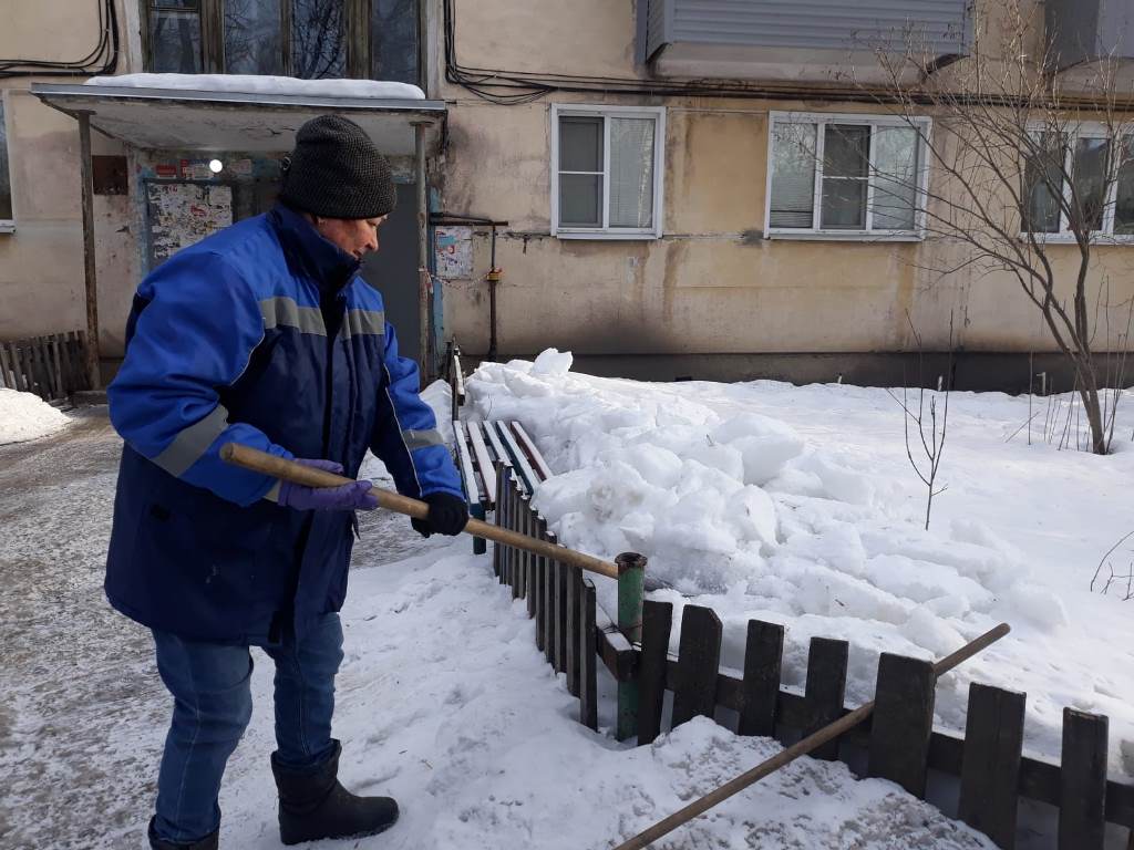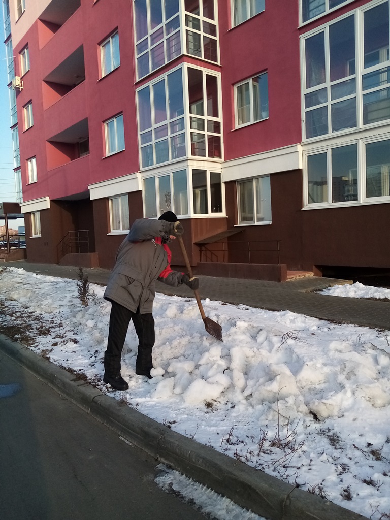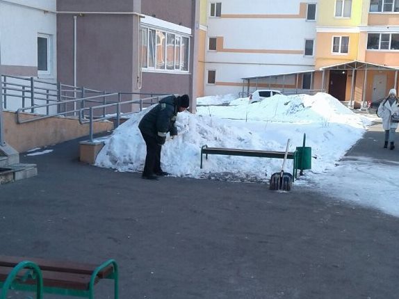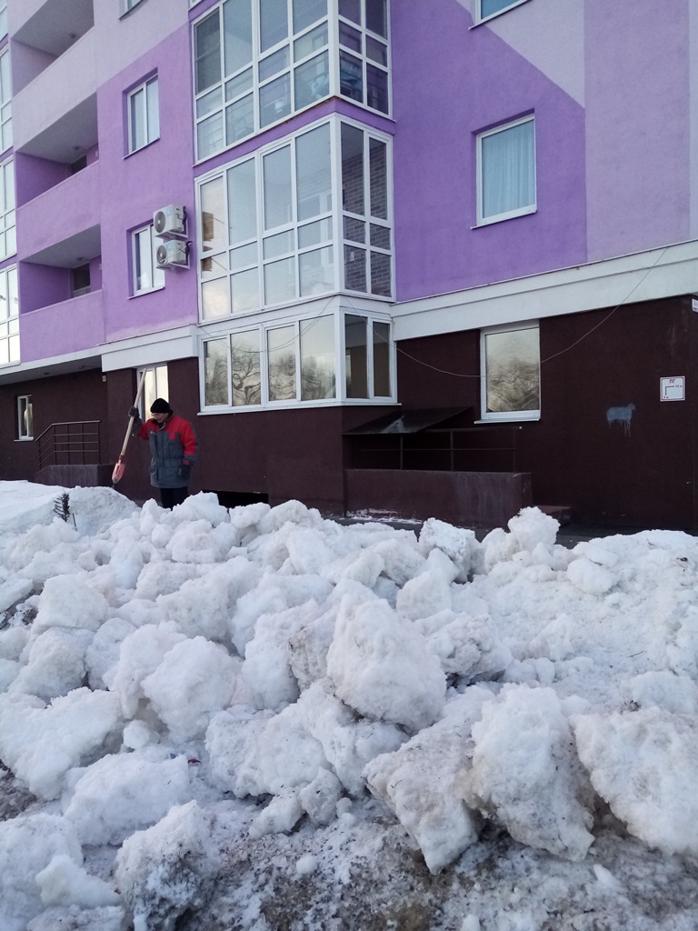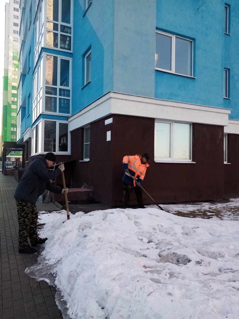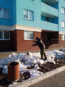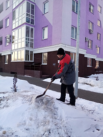Работники управляющих компаний, ТСЖ, ЖСК трудились на придомовых территориях многоквартирных домов, выполнено ворошение снега, уборка мусора, подметание входных групп МКД.