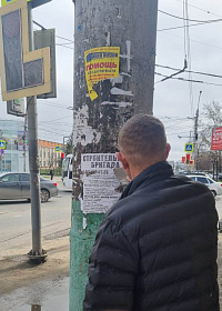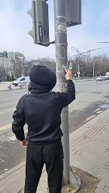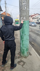 В центральной части города продолжена работа по очистке опор наружного освещения от незаконно расклеенных объявлений.