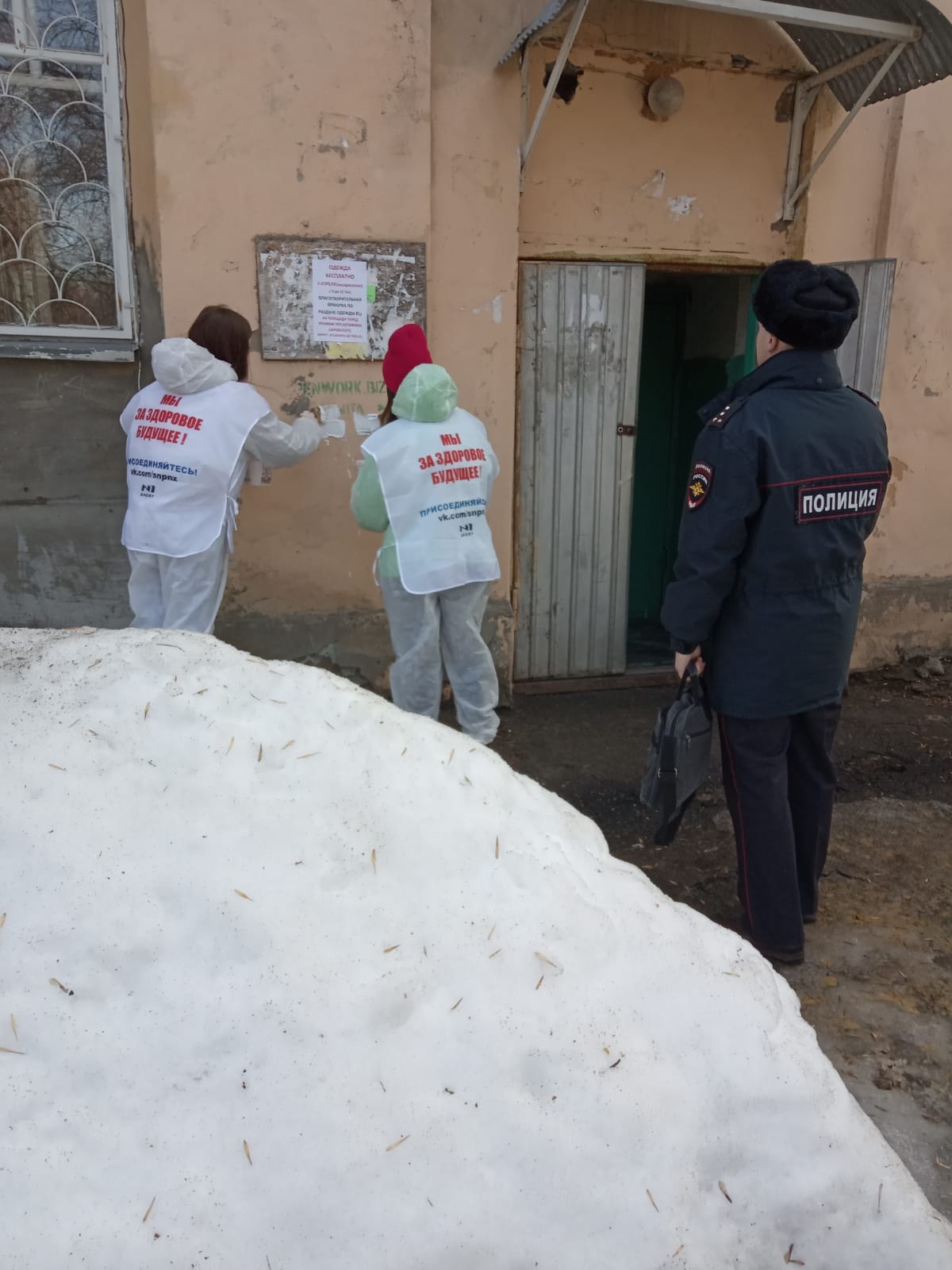 30 марта 2022 года на территории района проведён межведомственный рейд по ликвидации несанкционированных надписей с контактной информацией о сбыте курительных смесей (спайсов), наркотических веществ, размещенных на фасадах зданий многоквартирных домов, административных зданий по улицам Дружбы, Медицинская, Чапаева.