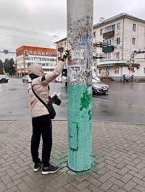 По улицам Московская, Володарского, Суворова, Бакунина, Октябрьская выполнена очистка опор наружного освещения от незаконно размещенных объявлений.