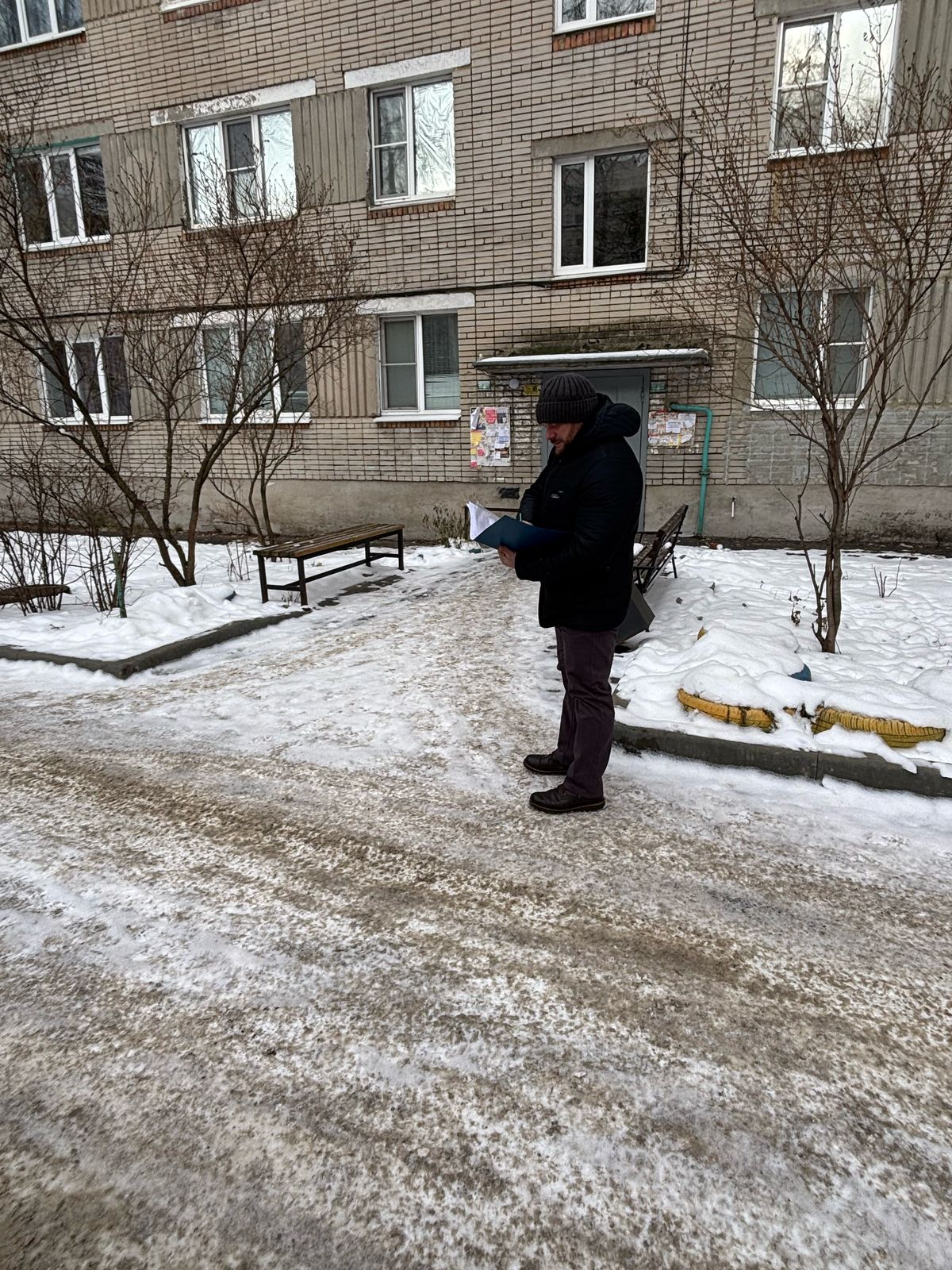 В ходе обхода дворовых территорий участники рейда пообщались с жителями, выслушали замечания, направленные в адрес управляющих компаний и обслуживающих организаций, зафиксировали недостатки в части не проведения очистки от снега и не обработки от наледи.