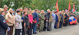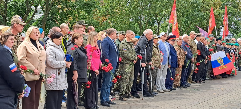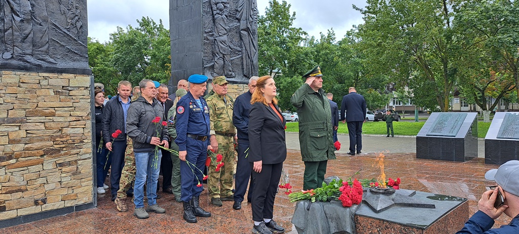 Собравшиеся в сквере Воинской доблести почтили минутой молчания память воинов, погибших в локальных конфликтах и боевых действиях, возложили цветы к Вечному огню у мемориала “Афганские ворота”