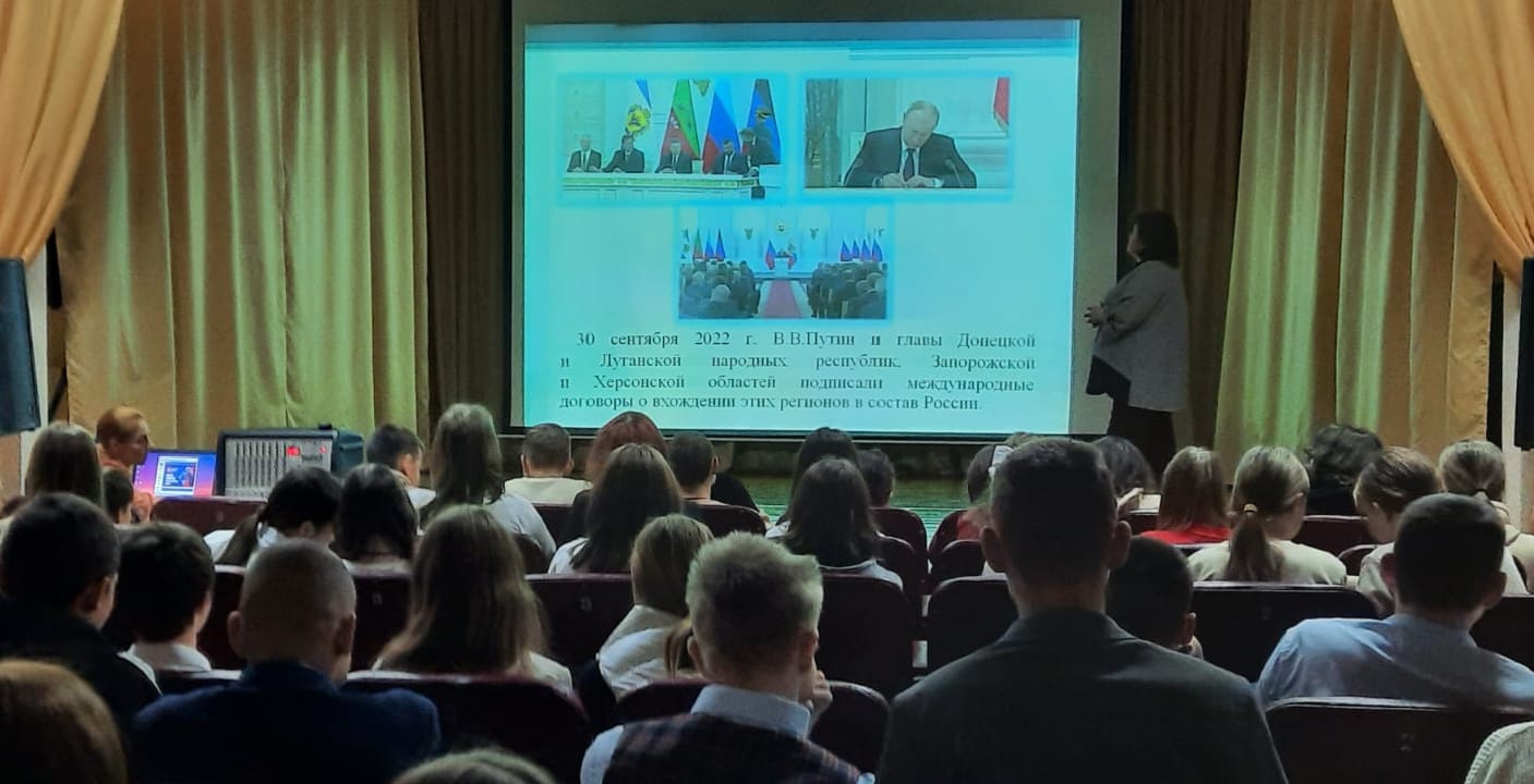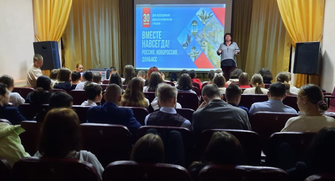30 сентября 2025 года в структурном подразделении «Маяковский» Центра культуры и досуга в рамках клубного формирования «Киноклуб «Стоп – кадр» для учащихся школы № 66 организована тематическая программа «В единстве наша сила», посвященная Дню воссоединения Донбасса и Новороссии с Россией.