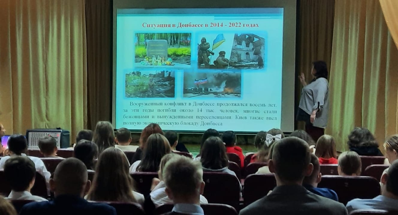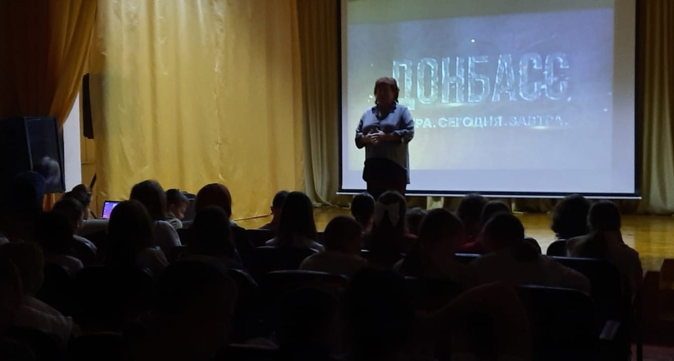 Кульминацией мероприятия стал показ фильма Татьяны Борщ «Донбасс. Вчера. Сегодня. Завтра». Эта документальная лента позволила учащимся увидеть своими глазами трагедию, развернувшуюся на Донбассе, почувствовать боль и страдания людей, живущих в условиях войны и разрухи.