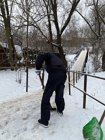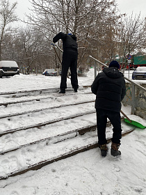 Администрацией района организована расчистка лестничных маршей и спусков по улицам Антонова, Фабричная, Луначарского, Ангарская, Коннозаводская, Павлушкина.