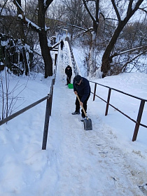 1 и 2 января 2026 года администрацией Железнодорожного района города Пензы организованы работы по расчистке от снега лестничных маршей и спусков по улицам Ангарская, Антонова, Луначарского, Фабричная и другим, проведена очистка крыш зданий в центральной части города от наледи и сосулек.