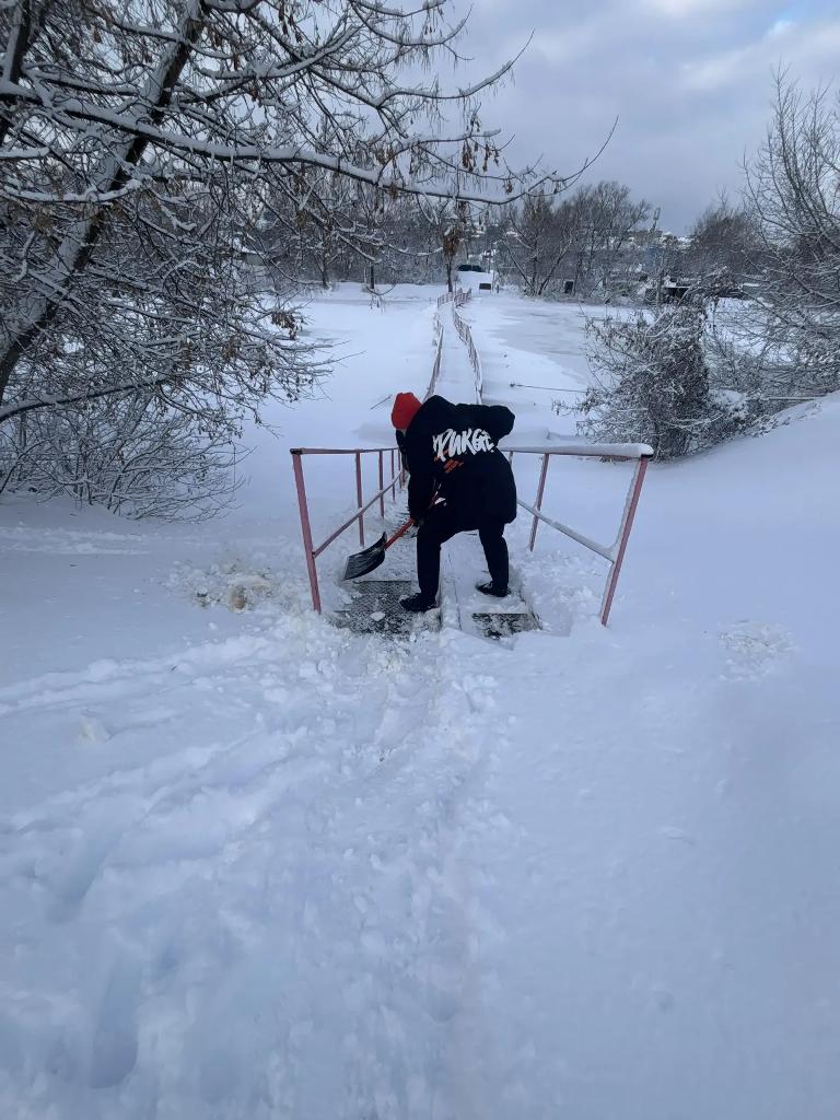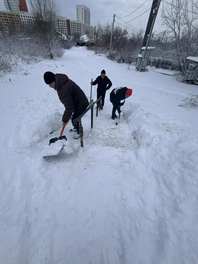 Сегодня, 4 января 2026 года, в Железнодорожном районе организованы работы по расчистке территорий от снега.