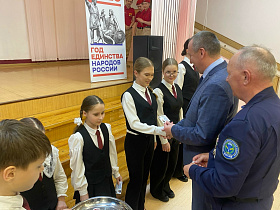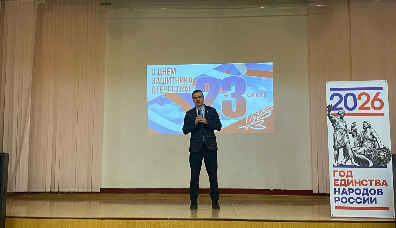 Директор школы Денис Поколявин в приветственном слове подчеркнул важность патриотического воспитания подрастающего поколения.