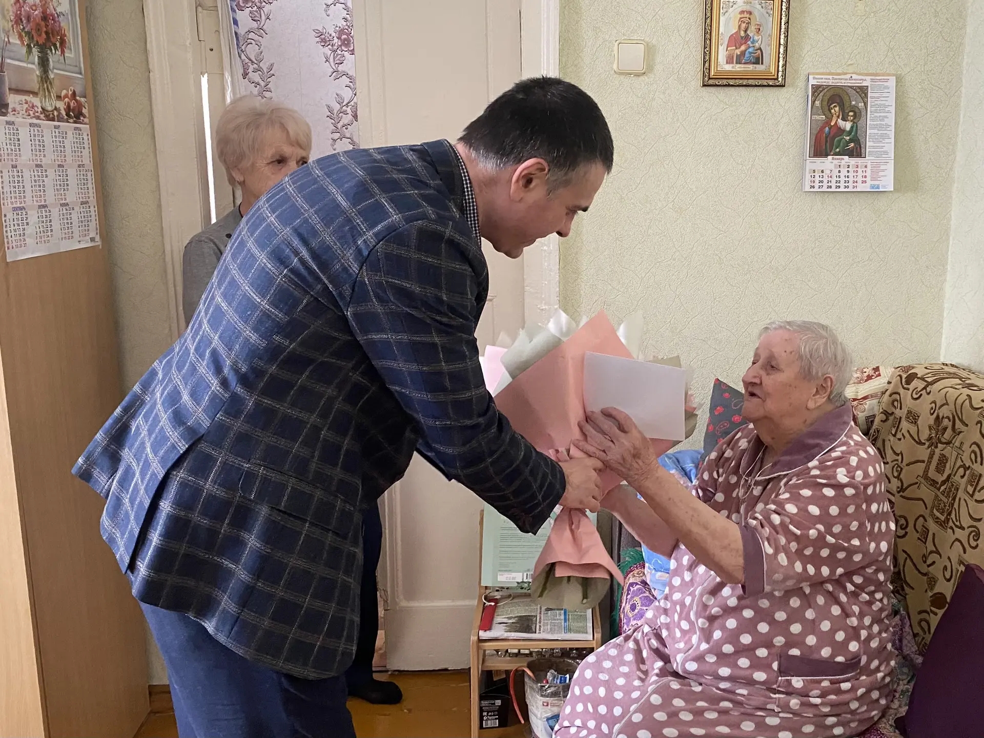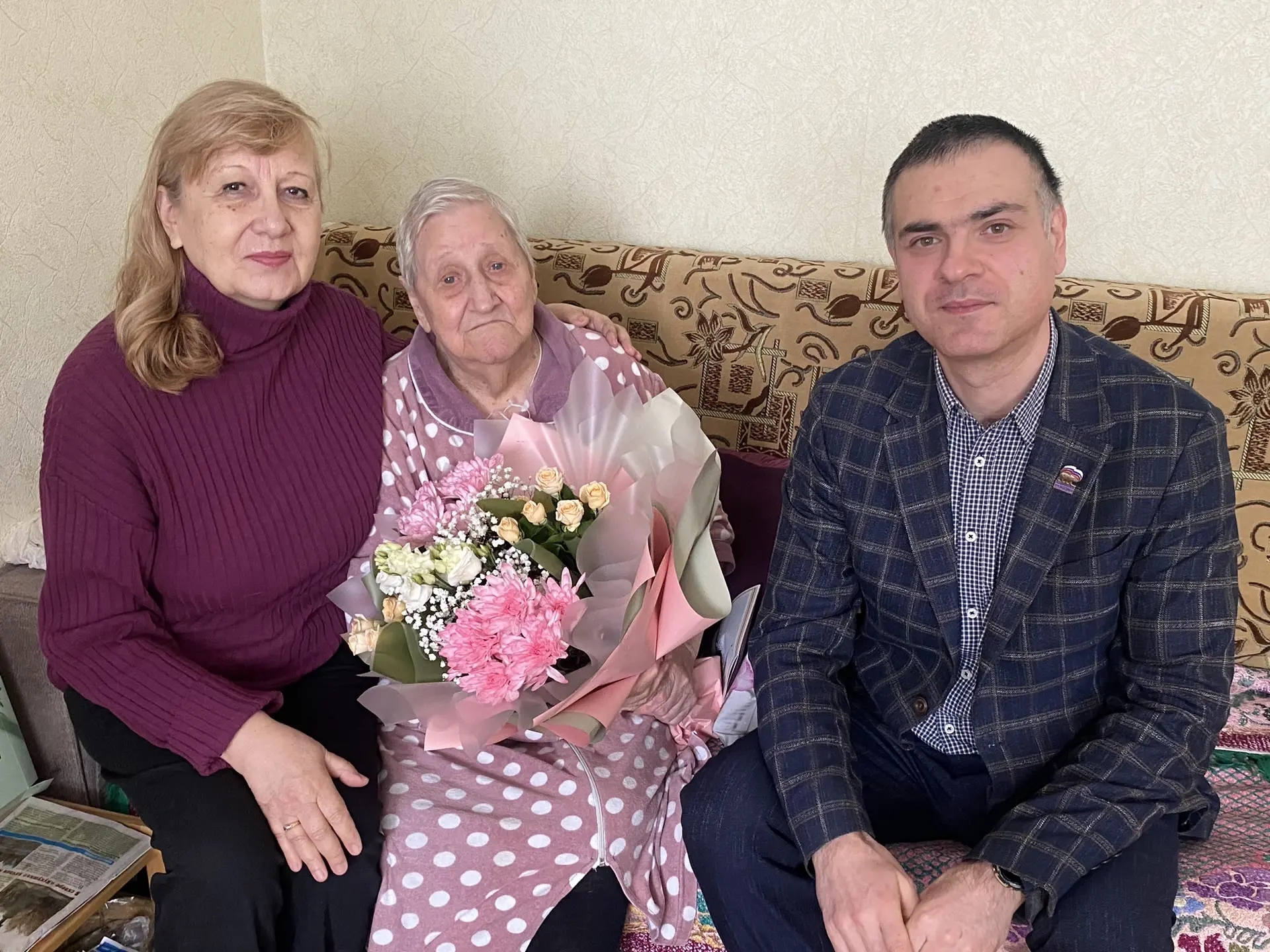 10 марта 2026 года ветерана торжественно поздравили глава администрации Железнодорожного района города Пензы Андрей Шулькин и помощник депутата Пензенской городской Думы Николая Кузякова – Галина Губанова.