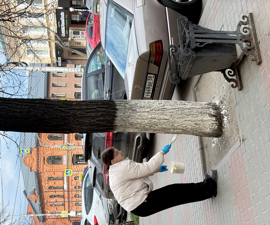 Сегодня, 23 апреля 2026 года, в Железнодорожном районе города Пензы организованы работы по побелке стволов деревьев. Это мероприятие традиционно проводится в рамках месячника по благоустройству территорий.