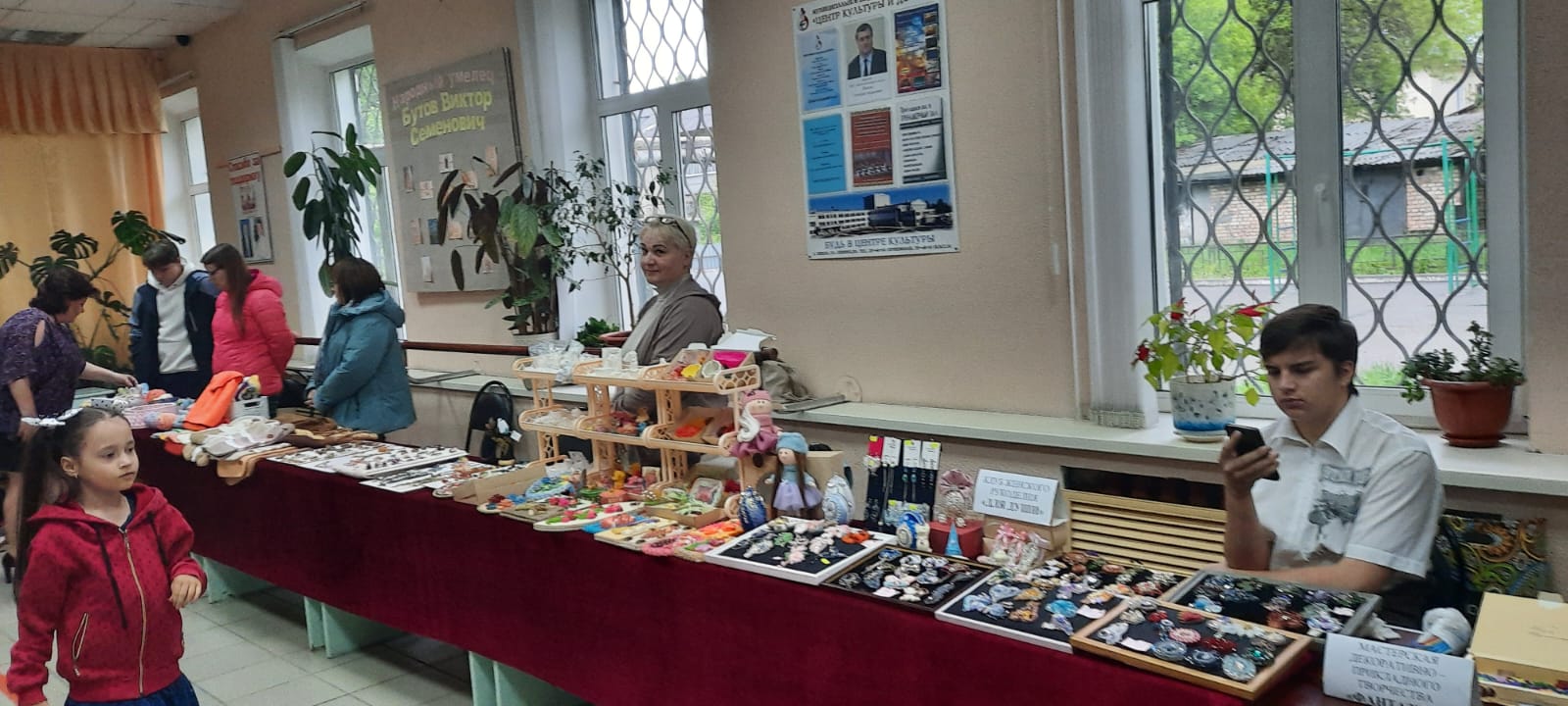 В фойе ДК «Маяковский» были организованы выставка клуба женского рукоделия «Для души» ДК «Современник» и мастер – класс для детей от мастерской декоративно – прикладного творчества «Фантазия» города Заречный.