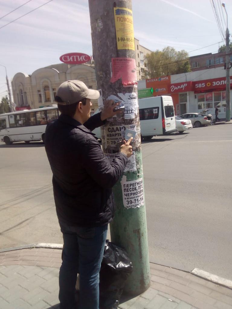 Продолжена очистка опор наружного освещения, дорожных знаков от визуальной нерекламной информации по улицам Московская, Октябрьская, Урицкого, Суворова, Долгова, Чехова, Бакунина.