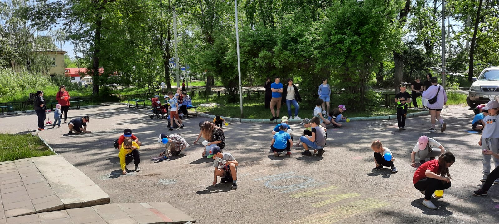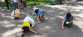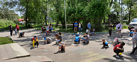 Все дети получили воздушные шары, загадали самое заветное желание и нарисовали свои мечты мелками на асфальте.